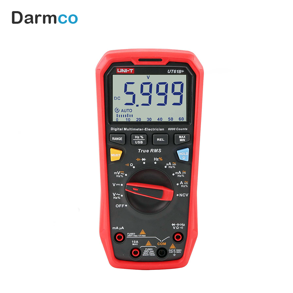 مولتی متر دیجیتالی یونیتی مدل +UT61B یک مولتی متر دیجیتال است که پارامترهای مدار را اندازه گیری میکند و در حوزه کاری الکترونیک و تست و تعمیر مدارهای الکتریکی و الکترونیکی، در آزمایشگاه های آموزشی، کارگاه ها و کارخانه های صنعتی کاربردی است. مولتی متر دیجیتالی UT61B پلاس، دارای تنظیم رنج خودکار هست و همچنین با صفحه نمایش بزرگ خود با نور پس زمینه و با اندازه گیری مقایسه ای و مقدار ماکزیممم ، مینیمم و مقدار نسبی است و قابلیت اتصال به کامپیوتر و گرفتن داده های اندازه گیری شده را بصورت خروجی و آنالیز این داده ها را روی سیستم دارد.