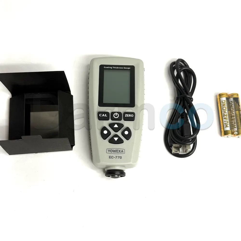 جالب است بدانید که ضخامت سنج رنگ EC-770 ساخت کمپانی یووکسا YUWESE کره است ولی تحت لیسانس کره، چین و هلند هم تولید و صادر می شود.دستگاه ضخامت سنج رنگ یواسه مدل EC770 علاوه بر استفاده های بسیاری که در صنعت دارد، در بحث کارشناسی رنگ خودرو کمک بسیاری به کارشناسان رنگ میکند. به صورتی که امروزه به یکی از ابزار لازم در بحث کارشناسی رنگ خودرو تبدیل شده است و یک دستگاه دوکاره از نوع پراب سرخود FNF میباشد که قابلیت اندازه گیری ضخامت رنگ و پوشش بر روی زیر پایه های آهنی و غیر آهنی را دارد. رنج اندازه گیری این ضخامت سنج رنگ از صفر تا 2000 میکرون میباشد. قابلیت ذخیره اطلاعات و انتقال اطلاعات به کامپیوتر از طریق کابل USB از دیگر قابلیتهای این دستگاه میباشد.