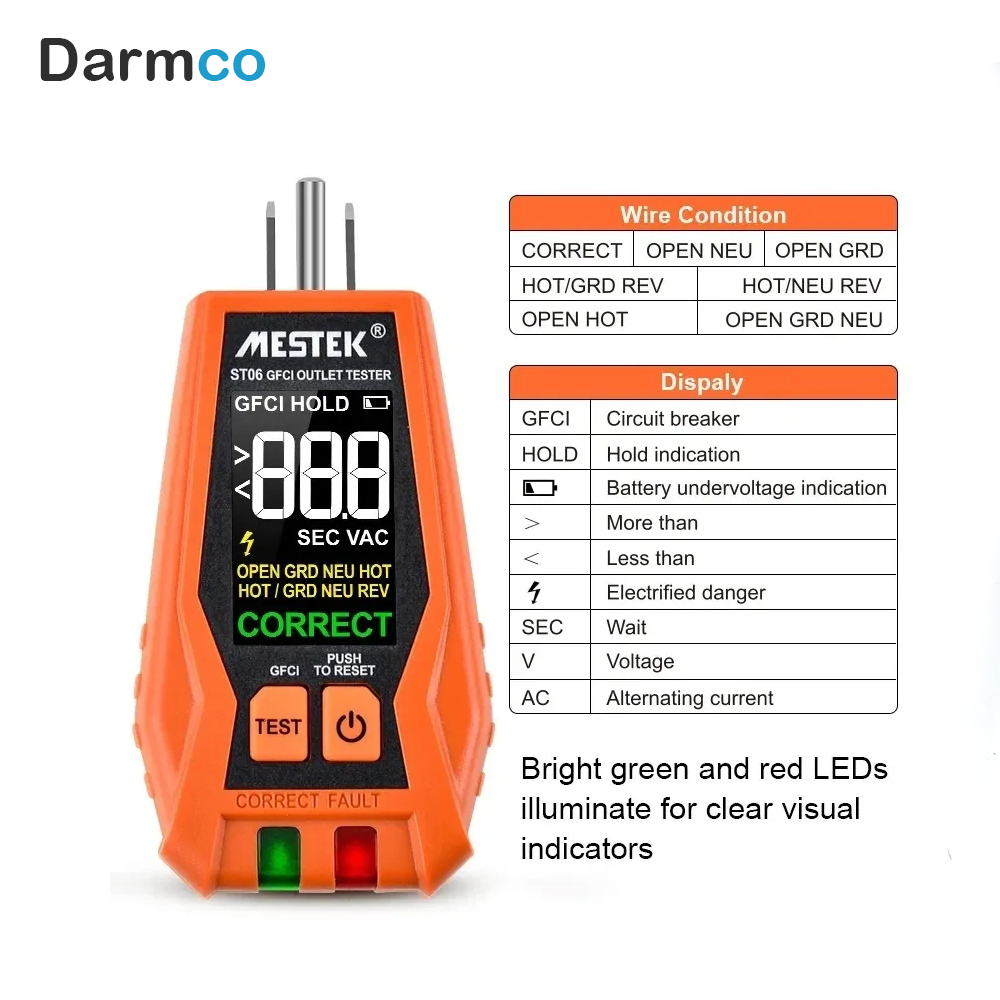 ویژگی های کلیدی ارت سنج و تستر سوکت هوشمند مستک مدل MESTEK ST06: