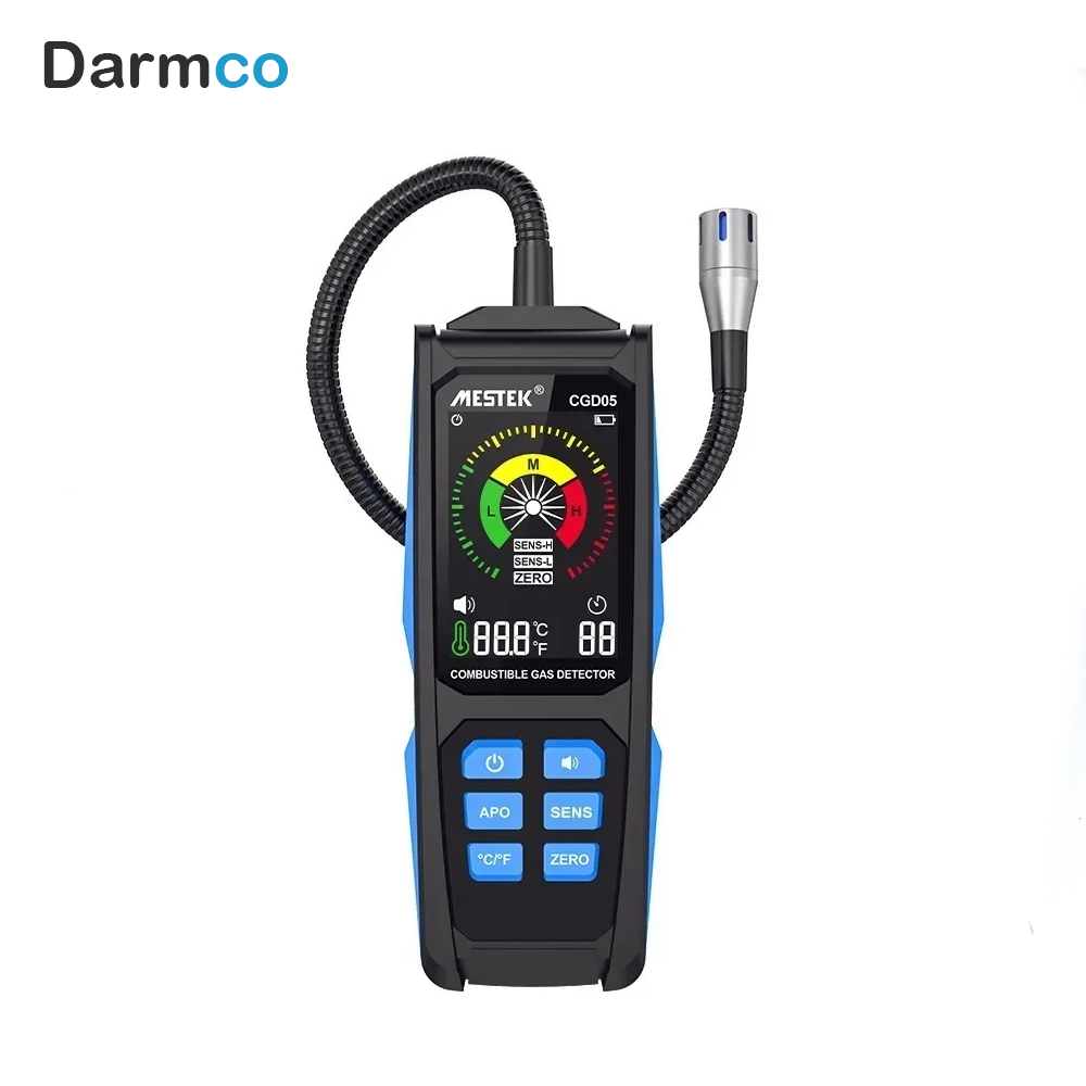 نشت یاب گاز دیجیتال MESTEK CGD05 ابزاری دقیق و قابل اعتماد برای شناسایی نشت گاز در لوله ها، رگولاتورها، اتصالات و سایر نقاط حساس است. این دستگاه قادر است میزان نشت گاز را به صورت PPM یا %LEL نمایش دهد و همچنین دمای محیط را در دو مقیاس سانتی گراد و فارنهایت نمایش می دهد.