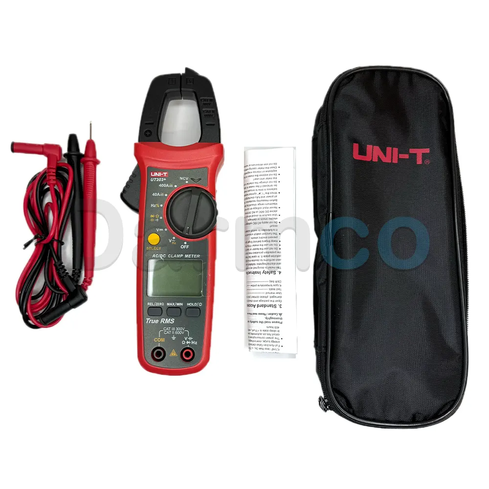 آمپرمتر کلمپی دیجیتال یونیتی مدل UT203 پلاس برند یونیتی ابزاری دقیق و ایمن با عملکرد استثنایی و کاربری آسان میباشد. این محصول از جدیدترین محصولات این شرکت بهشمار میآید و بهعنوان یک ابزار قدرتمند برای اندازهگیری ولتاژ، جریان، فرکانس، ظرفیت خازنی و مقاومت طراحی شده است.امکان اندازهگیری جریان متناوب AC و جریان مستقیم DC تا 400 آمپر با دقت بالا را داراست. همچنین امکان اندازهگیری ولتاژ متناوب AC و ولتاژ مستقیم DC تا 600 ولت و فرکانس ولتاژ متناوب AC تا 60 کیلوهرتز نیز با دقت عالی در این آمپرمتر وجود دارد.